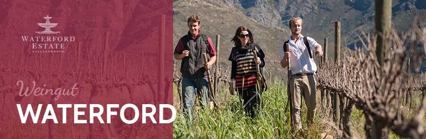 Waterford wurde 1998 gegründet, als Jeremy und Leigh Ord 120 ha Wein-Farmland von hervorragender Qualität zum Anbau von Wein im Gebiet von Stellenbosch erwarben, eingebettet zwischen den Simonsberg- und Helderberg-Bergketten. Der Brunnen im Hof von Waterford ist ein Symbol der Überschwenglichkeit und der unverkennbaren Weine, die aus den Waterford eigenen Böden hervorgehen.